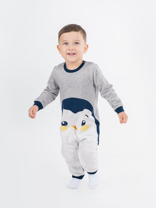 Newborn Baby Boys Grey Bodysuit with Penguin Print