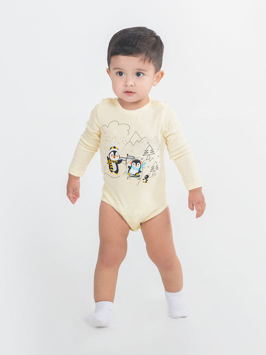 Newborn Baby Boys Yellow Bodysuit with Penguin Print